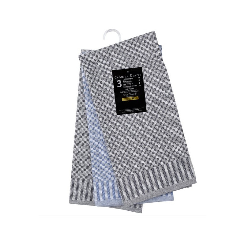 Essui de cuisine 2 noir - 1 bleu 70x70cm 100% cotton